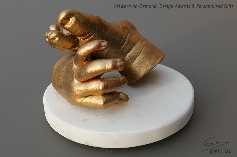 Wij maken ook juwelen in zilver of goud. Beeldjes op ware grootte worden traditioneel in brons gegoten. Een 3D-zwangerschapssculptuur kan ook in deze edele materialen worden geleverd.